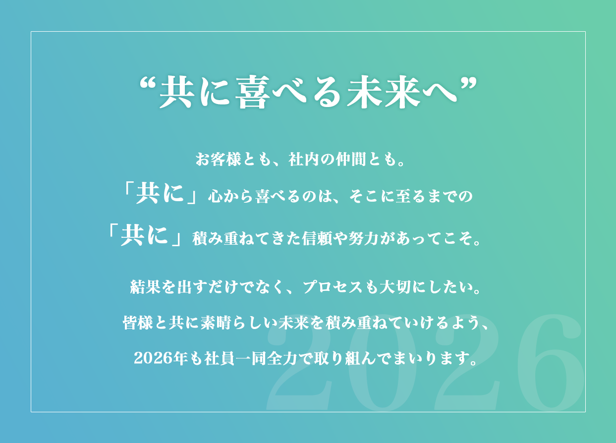なにとぞ、当社並びに従業員一同を今後ともご愛顧頂けます様、且つご指導とご鞭撻のほど、