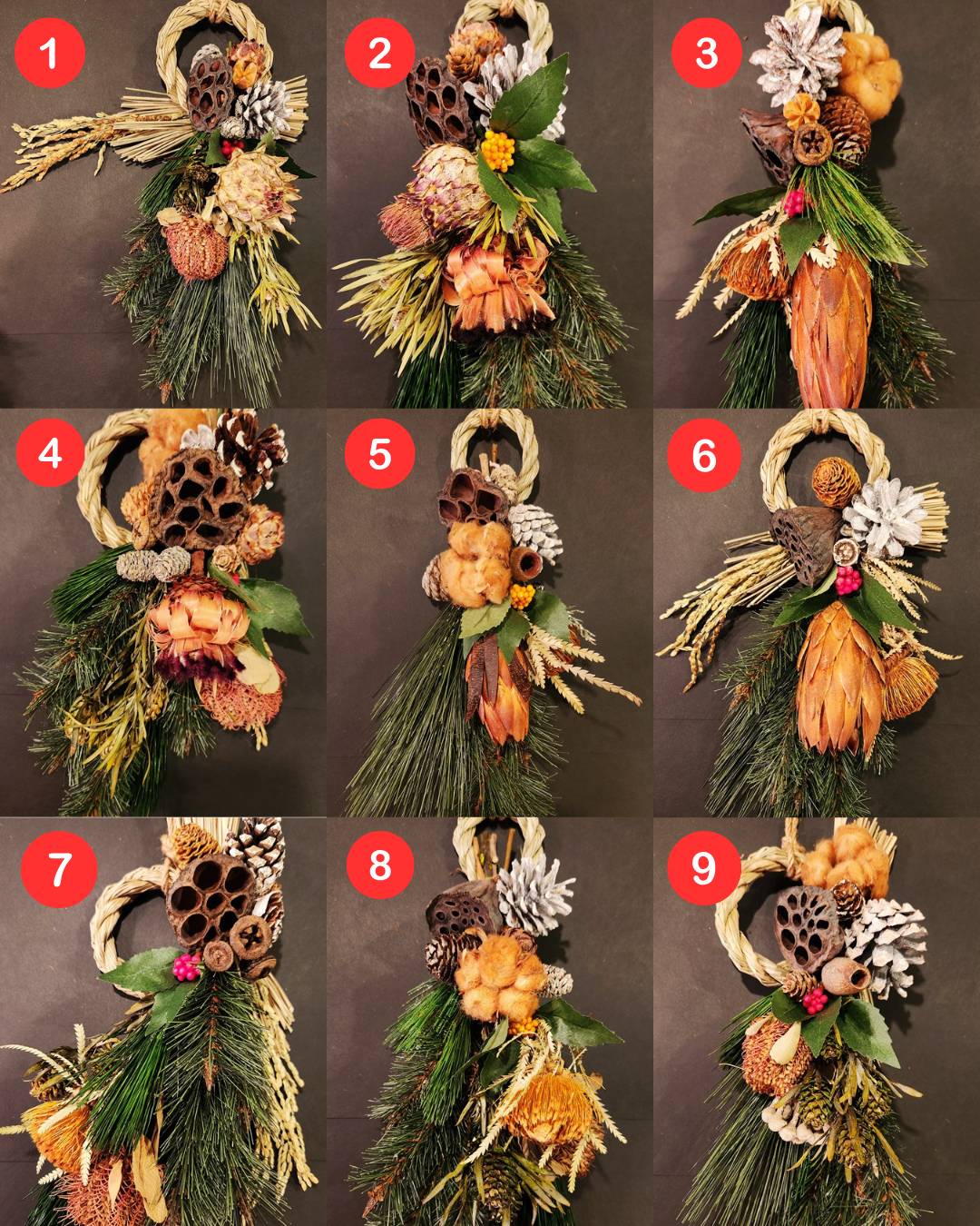 ・ドライのワイルドフラワーや木の実、コットンなどを使用したお正月飾りです。